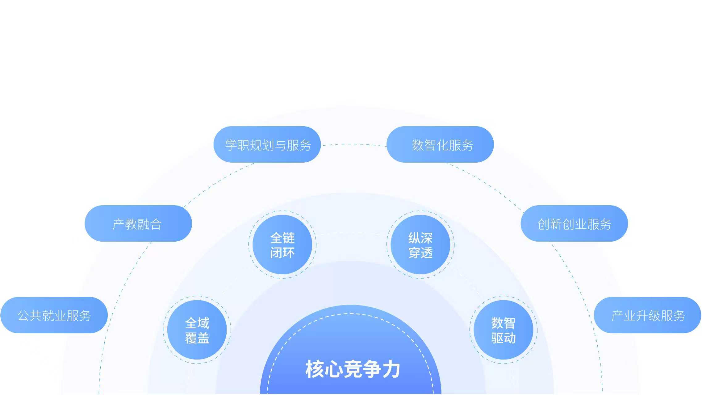 全域覆盖:"政校企人"四位协同,就业人群、 城市能级全覆盖。 全链闭环:就业创业双链协同、线上线下双线融合,赋能全场景、服务无断点。 纵深穿透:省-市-县-乡-社区五级穿透式服务网络,"中央大脑-区域神经末梢"精准响应。 数智驱动:1 个数智大脑、10+数智化平台、N 个AI 模型。 已携手上海虹口、北京昌平、赣州、西宁、郑州、威海、南昌、肇庆、南阳等 100 多个区域构建公就服务生态。