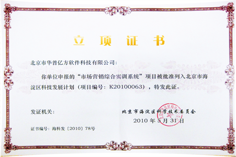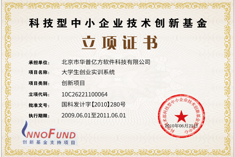 “大学生创业实训系统”获得科技部创新基金国家级立项支持、科技部创新基金北京市海淀区创新基金项目支持