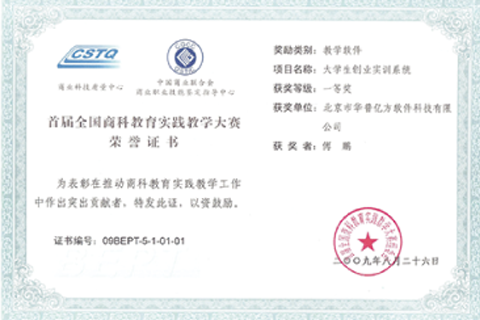 “创业实训系统”荣获中国商业联合会2009年全国实践教学大赛一等奖“中国商业科技进步奖”二等奖